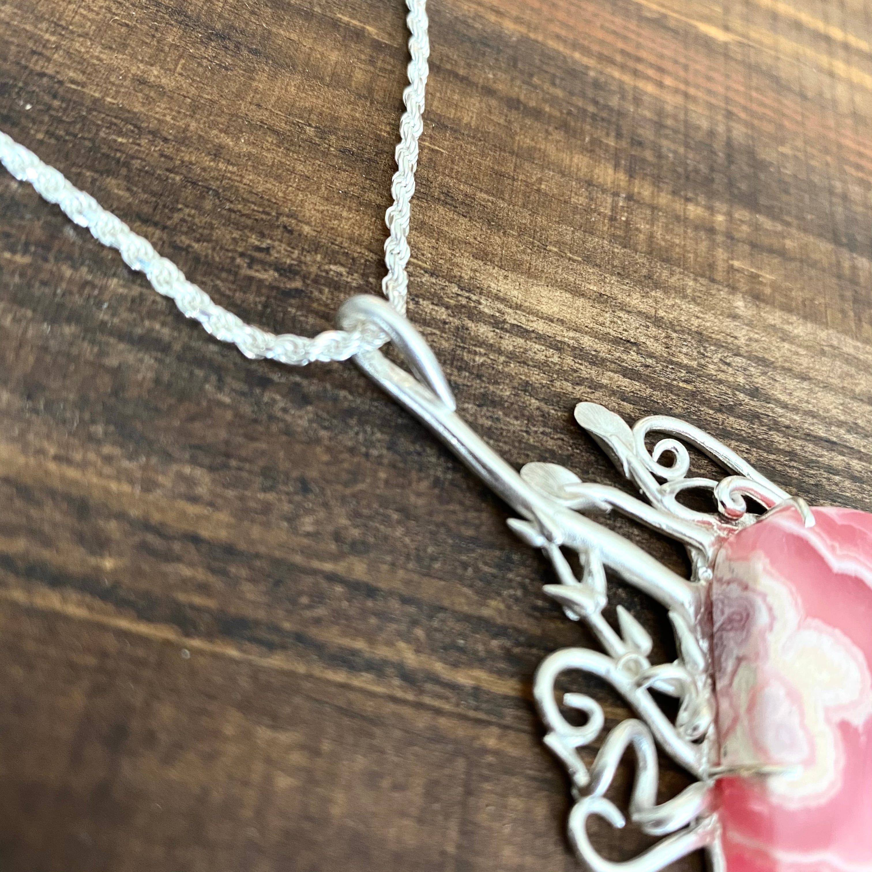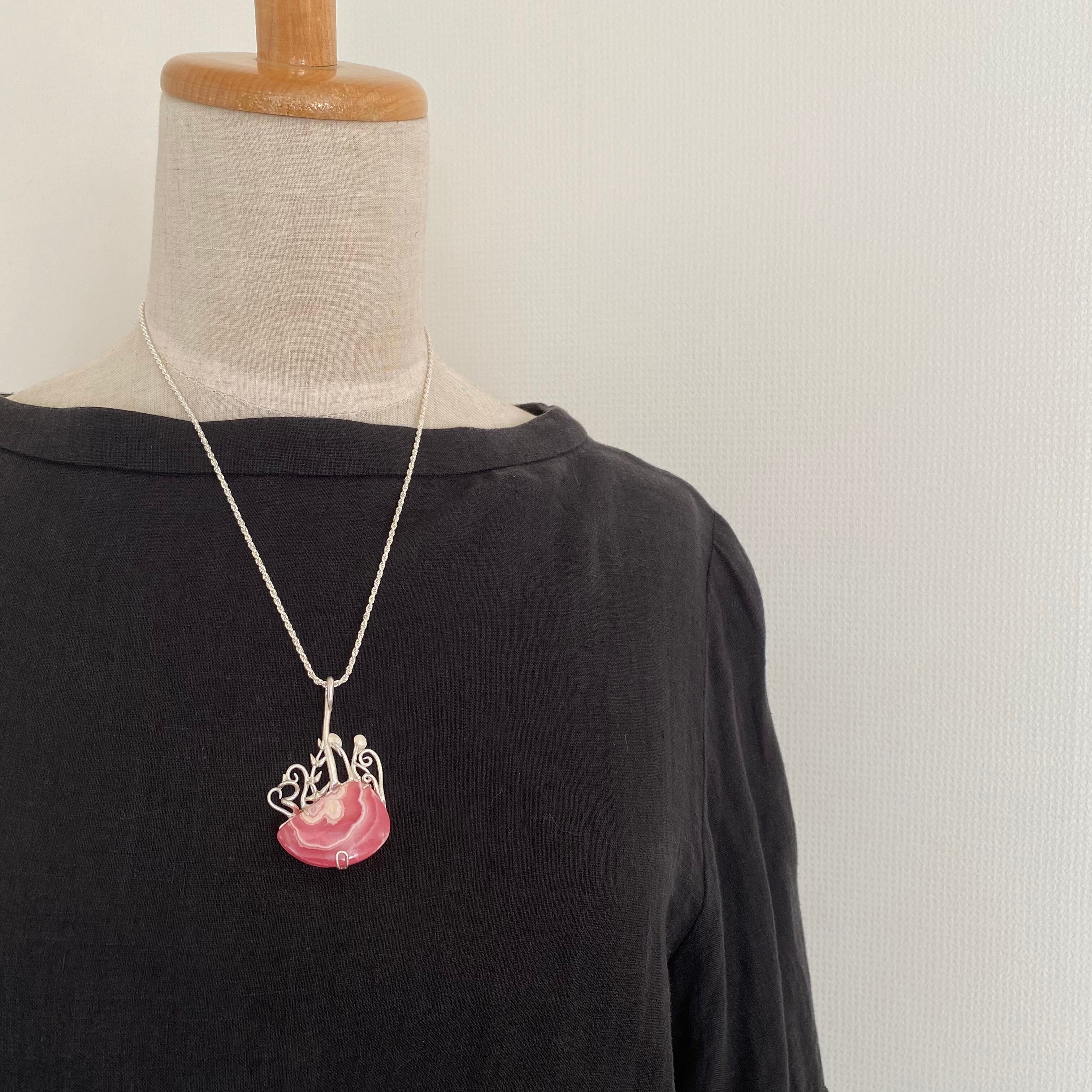 【純銀・天然石】インカローズのボタニカル風ネックレス